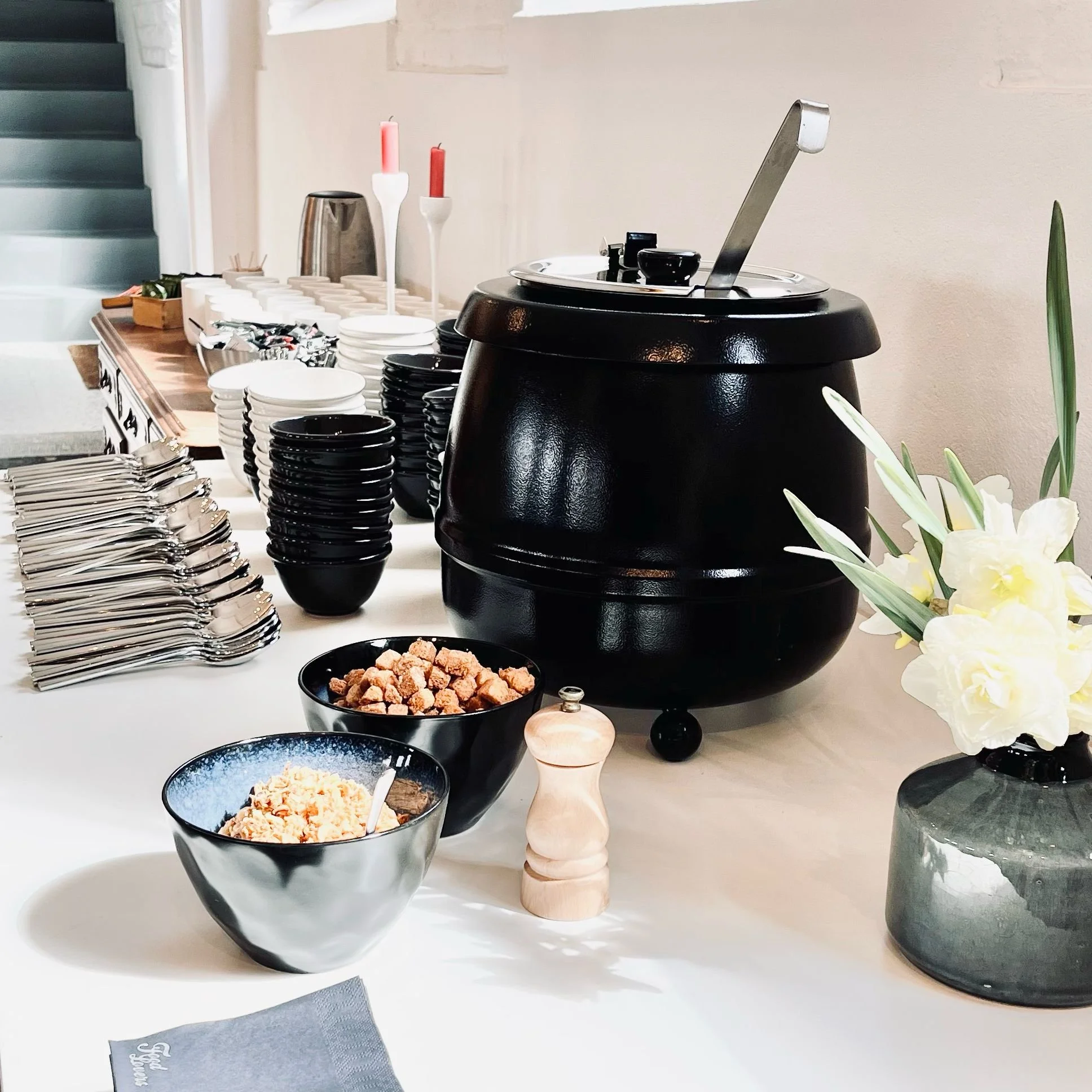 Ce buffet est accompagné d'un potage maison aux légumes de saison avec ses accompagnements, et de petits desserts.